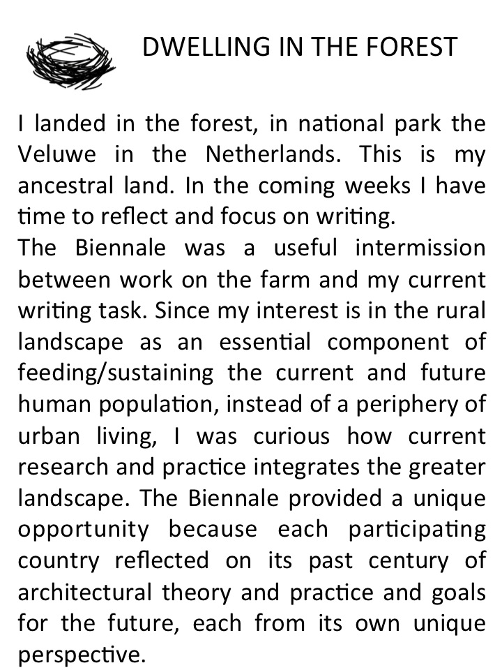 Today I travel to Venice, not to farm, but to visit the Architecture Biennale. My interest in architecture is easily explained, as it is the means by which humans organize and mediate space, influencing and/or determining ecological, socio-economic relationships, but I also ENJOY the creative tangible expression of spatial ideas.