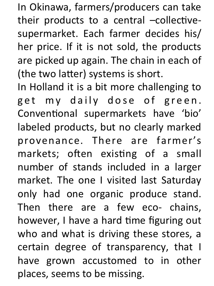 Maybe to be expected, but not selected on purpose, the farms I have worked at so far have mostly been run or led by women. In Japan (Okinawa) for instance, the network of farming women is characterized by a sharing of labor, products, produce and socializing. In Italy, it is a little different but the solidarity principle is underpinning a large organization of “Donne in Campo.” (www.donneincampo.it)