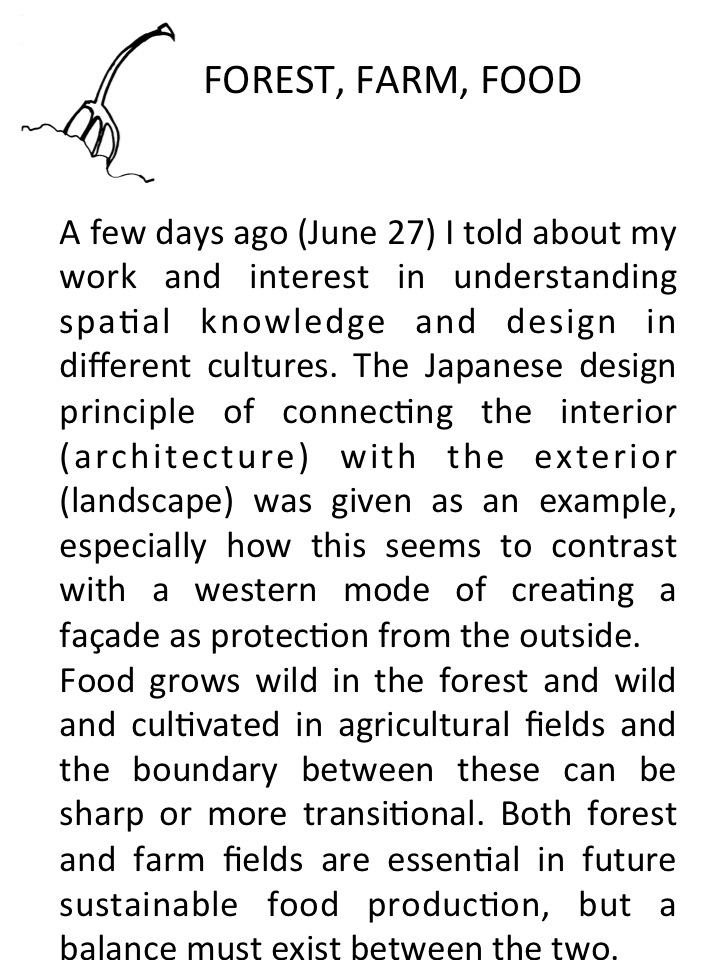 In a western worldview, relationships are often defined as a dichotomy, and so it seems to be with the relationship between forest and field. The traditional Japanese relationship with nature, similar to those of many indigenous cultures around the world, contrasts with the western attitude toward nature that emphasizes opposite interests. Farmers want to cut the forest to create more fields for instance, as they often need more land to stay economically competitive. Treating both forest and field as one system that is going to provide our healthy future food supply may be a better starting point for rural management.