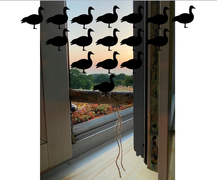 My window view is pretty green, watching clouds bobbing over the tree canopy to keep us all moisturized. Evening clouds, the low angle of the sun in the northern hemisphere can turn this view into dramatic scenes in this otherwise peaceful rural village, where cows moo and deer bleat and bellow. The tree canopy already turned black, the sun’s energy reflecting from the atmospheric scenery into dark blues and blazing reds.