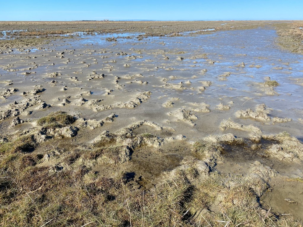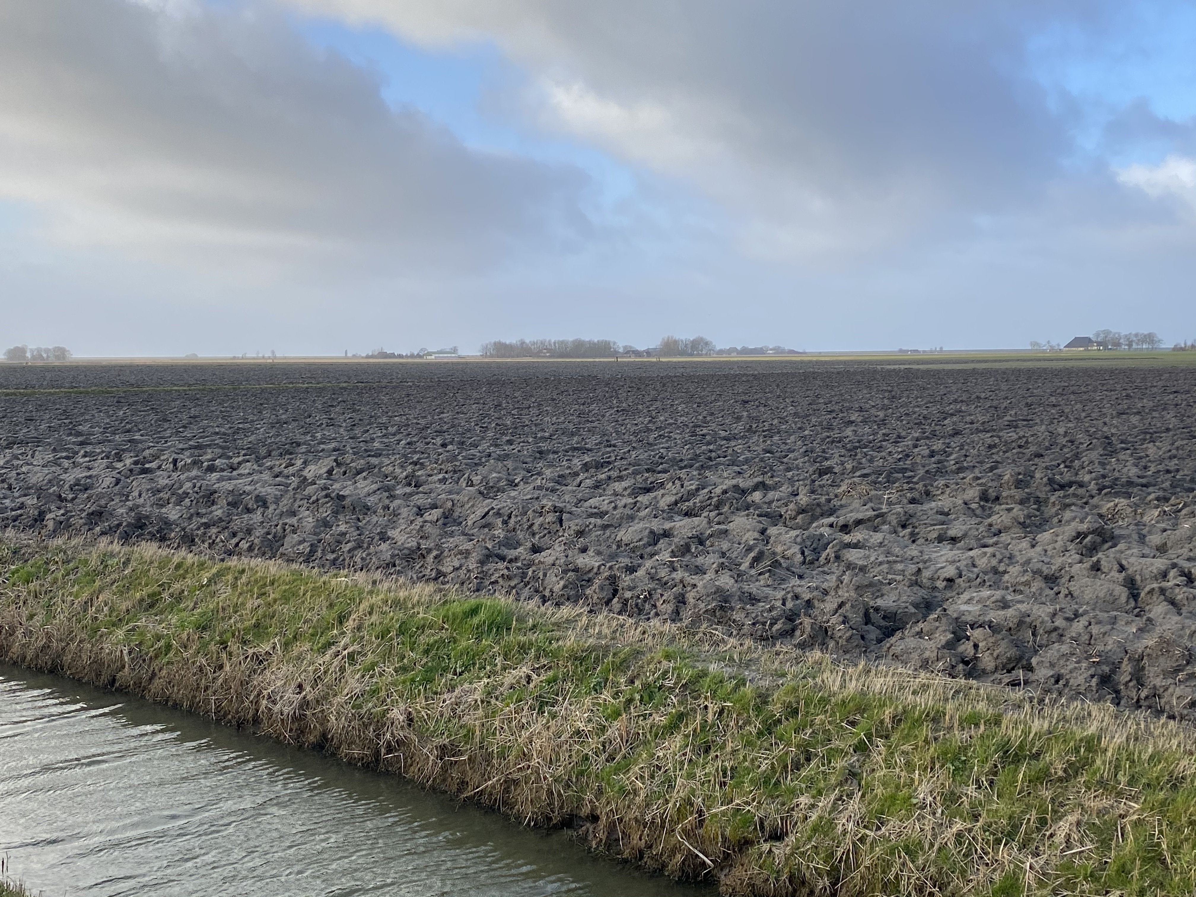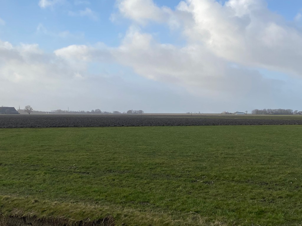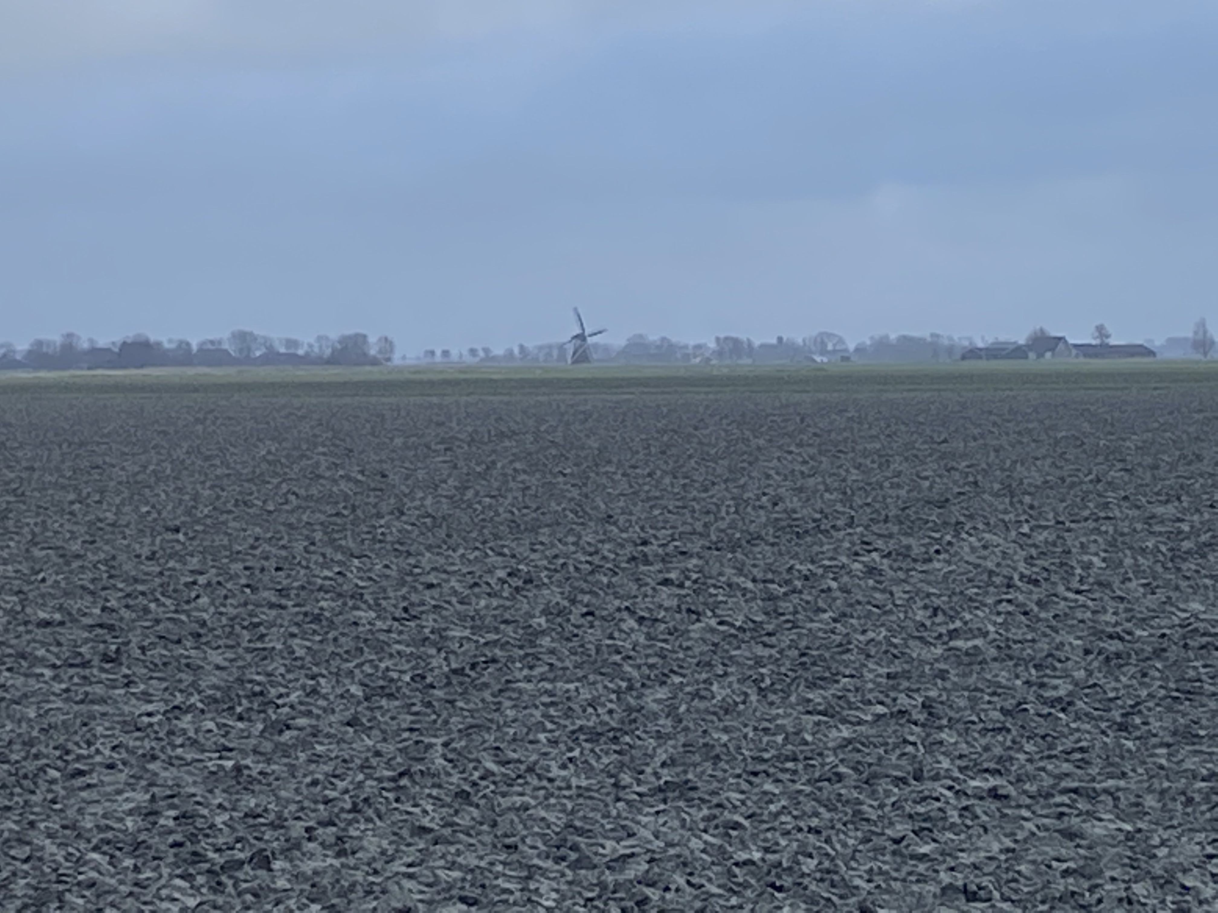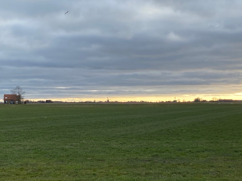 In whatever direction I look there is a windmill on the horizon, an old one, from the early days. No wonder with this kind of wind. Then there are the modern ones, the wind turbines, but surprisingly few, I hear myself thinking. Yet, every large farm seems to have its own. Wind, what an energetic phenomena, especially here, where it has free rein in all directions. Energy, you would think, happily taken for free.