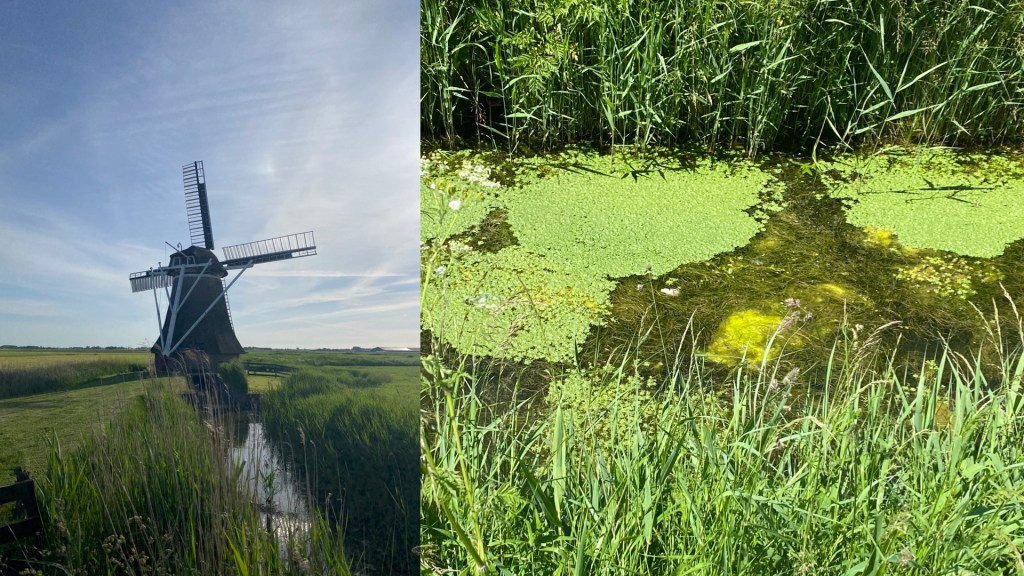 As all the crops are in the ground, now the next phase starts, spraying plant protectors, a euphemistic term for herbi- and pesticides. (this renaming ‘propaganda’ is another troubling issue all together). Salinization is another big problem in this region, especially after dry periods when not enough rainfall dilutes the salty seawater that reaches to the core of the northern region underground. The solution for that problem is ‘flushing’, as my neighbor explains, using a pumping system to refresh the water system. Water is a scarce resource, also in the Netherlands.. And if you think this is all necessary because the Dutch love eating their potatoes, well maybe that is not entirely the case. Most of the potatoes my neighbor produces are for export to Africa, a growing market. Meanwhile the algae are lushly blooming in the ditches.