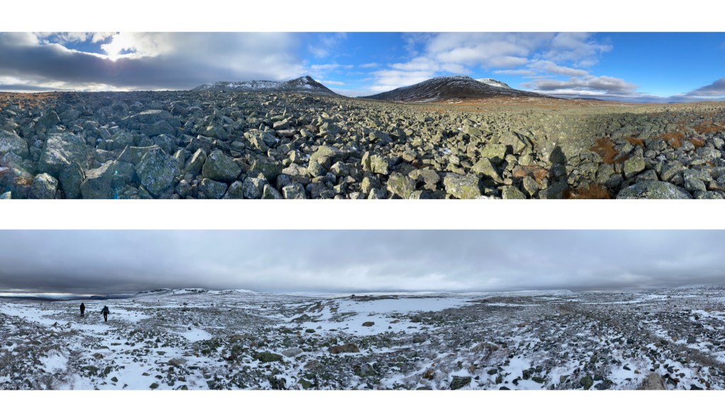 The landscape we traverse is overwhelmingly beautiful. It is also inhospitable, yet humans have lived in this region for thousands of years and the Sami continue to do so. It is confronting. Questions arise, about our relationship with these past life forms, with the current landscape and everything in between, discussions ensue. Life and death. Despite this overwhelmingness, the physically demanding trip inspires and excites us.