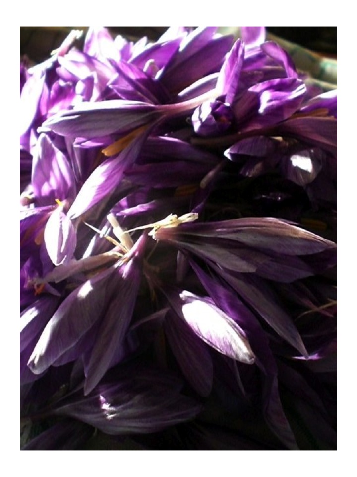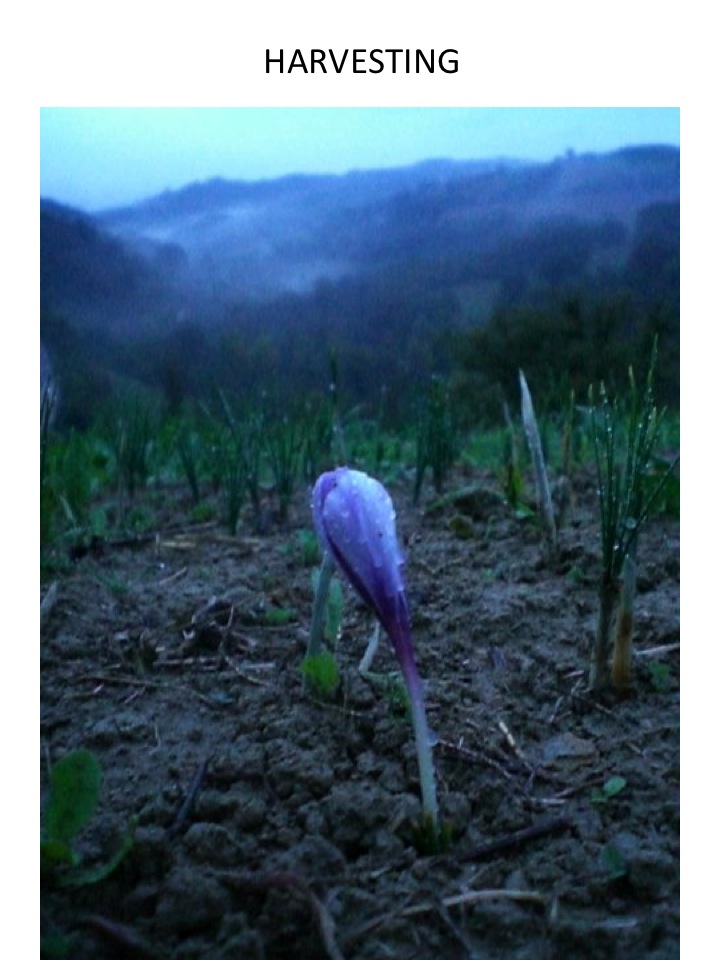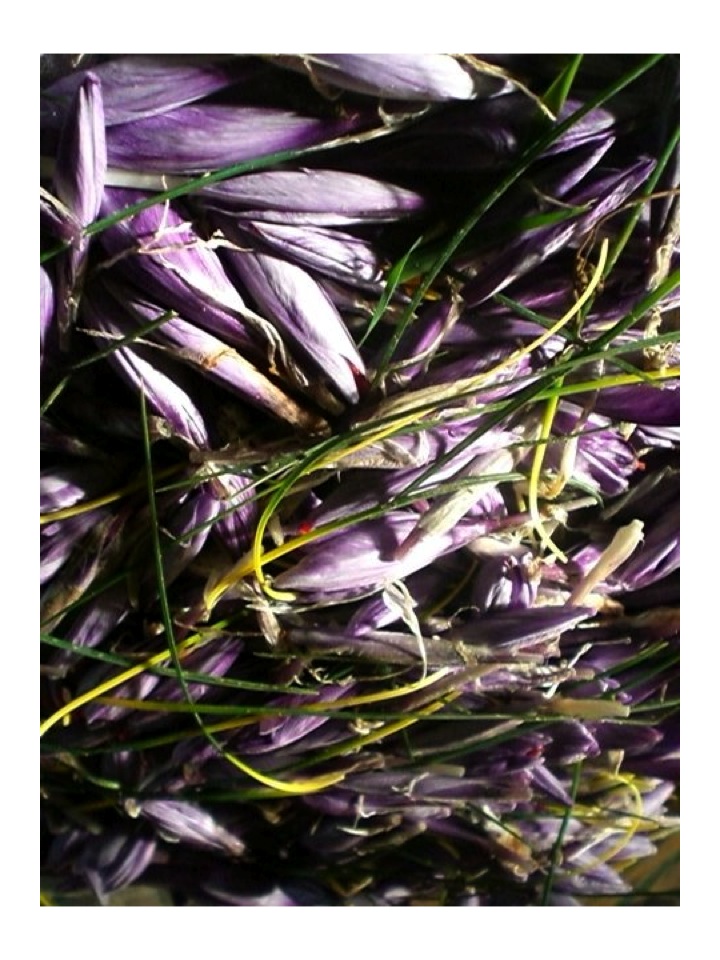 I am currently on an organic saffron farm in the Marche region. Saffron is known as the world’s most costly spice, made from the dried stigmas of the crocus flower (Crocus sativus) Although often thought of as native to Southeast Asia, the cultivation of saffron most likely originated in Crete during the Minoan period. The ideogram for saffron is recognized in Linear B tablets (1450 BCE), documenting large amounts of saffron either cultivated or gathered from the wild. Frescos in Knossos also depict saffron gatherers.